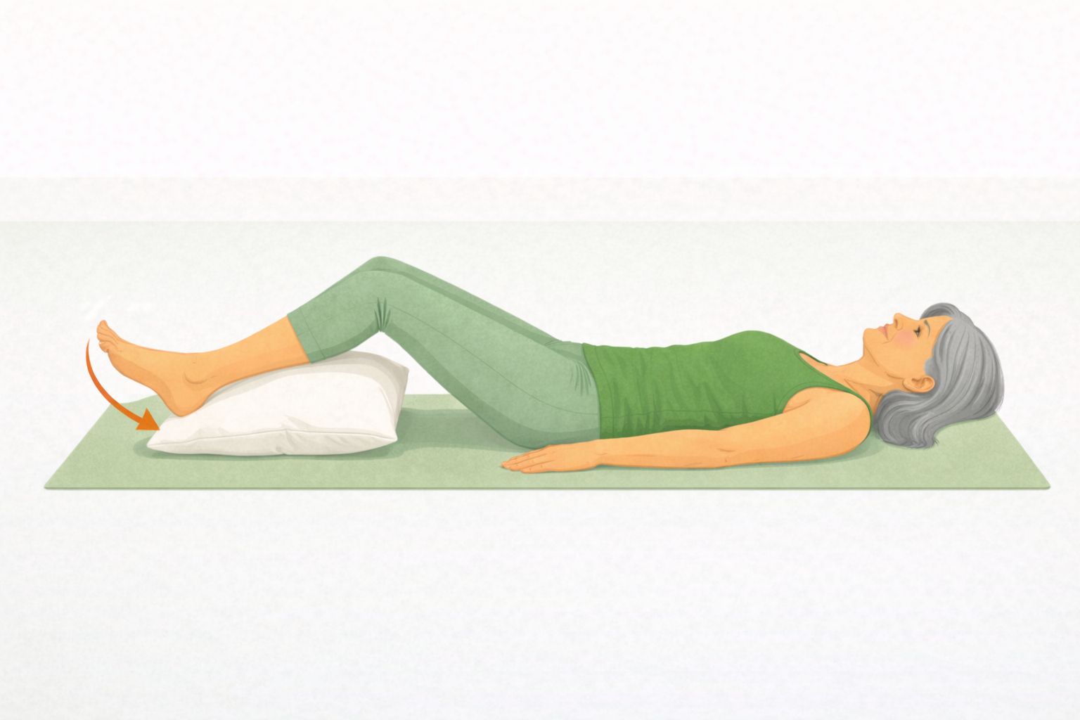 Lie on your back (supine position) with your knee slightly bent and supported by a pillow.