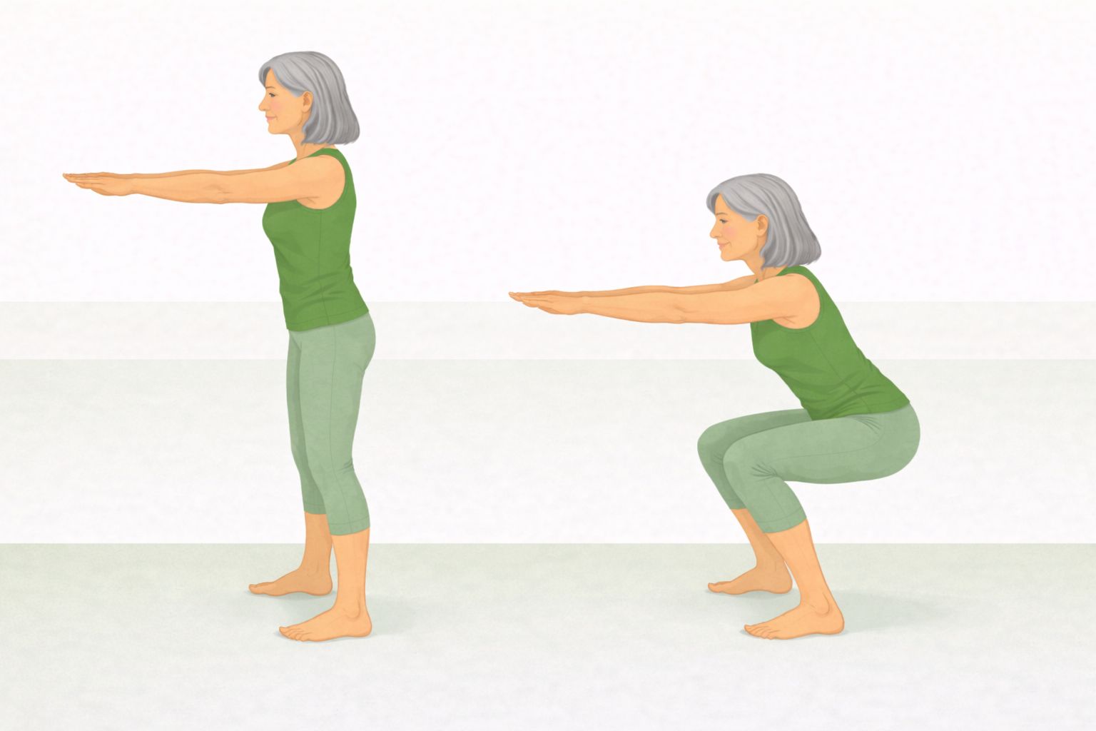 → If you have knee pain: Only squat as deeply as feels comfortable or skip it.
